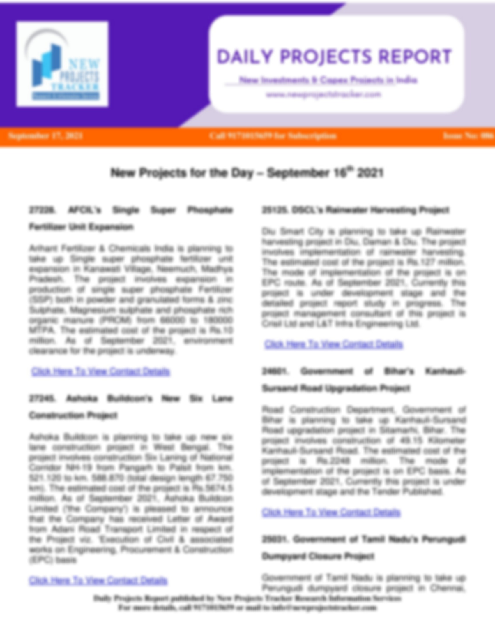 Salts and Chemicals’ Specialty and Disinfectant Chemicals Mfg. Project Salts and Chemicals is planning to take up Specialty and disinfectant chemicals manufacturing project in Sugandha, Village, Hooghly, West Bengal. The project involves manufacturing…