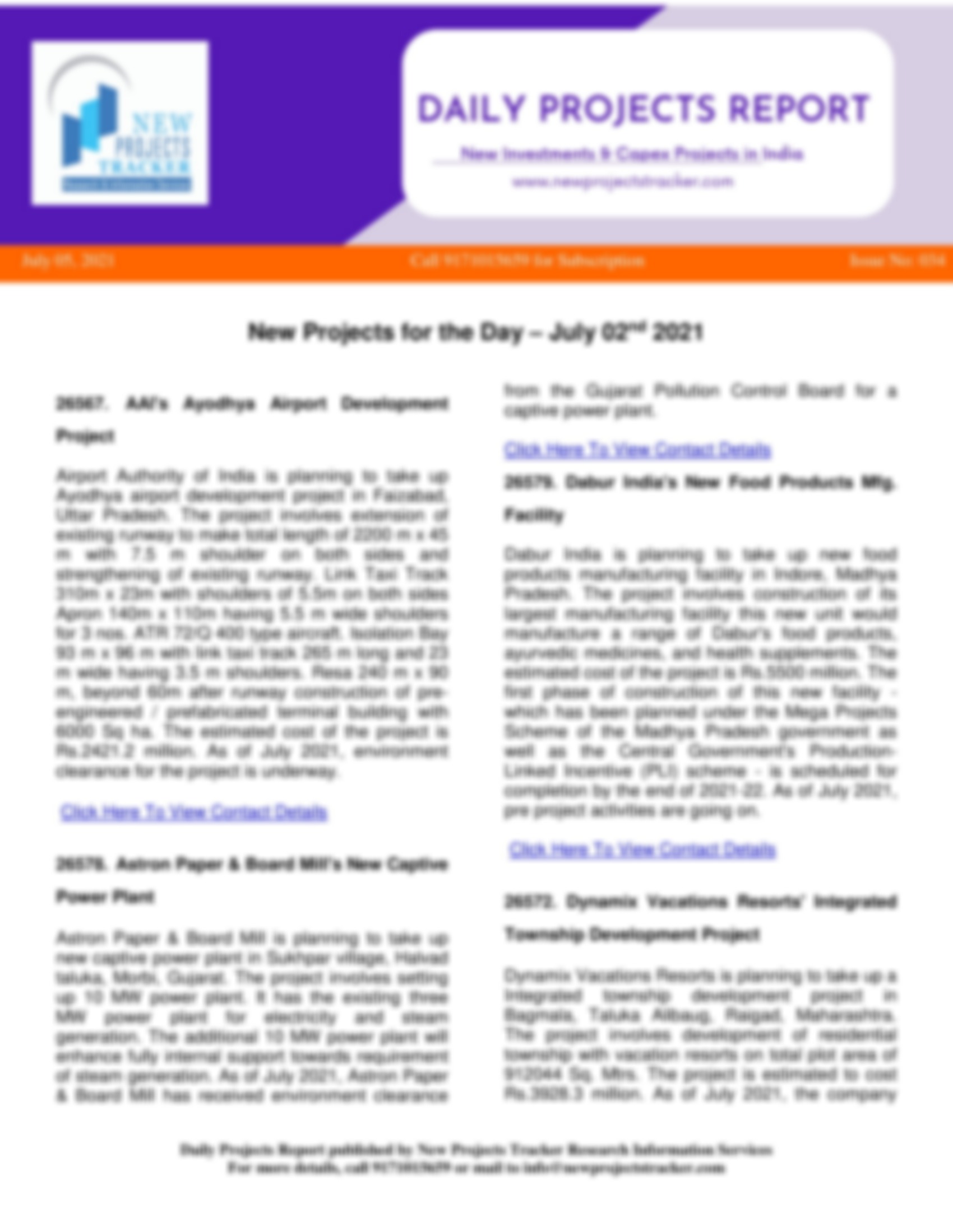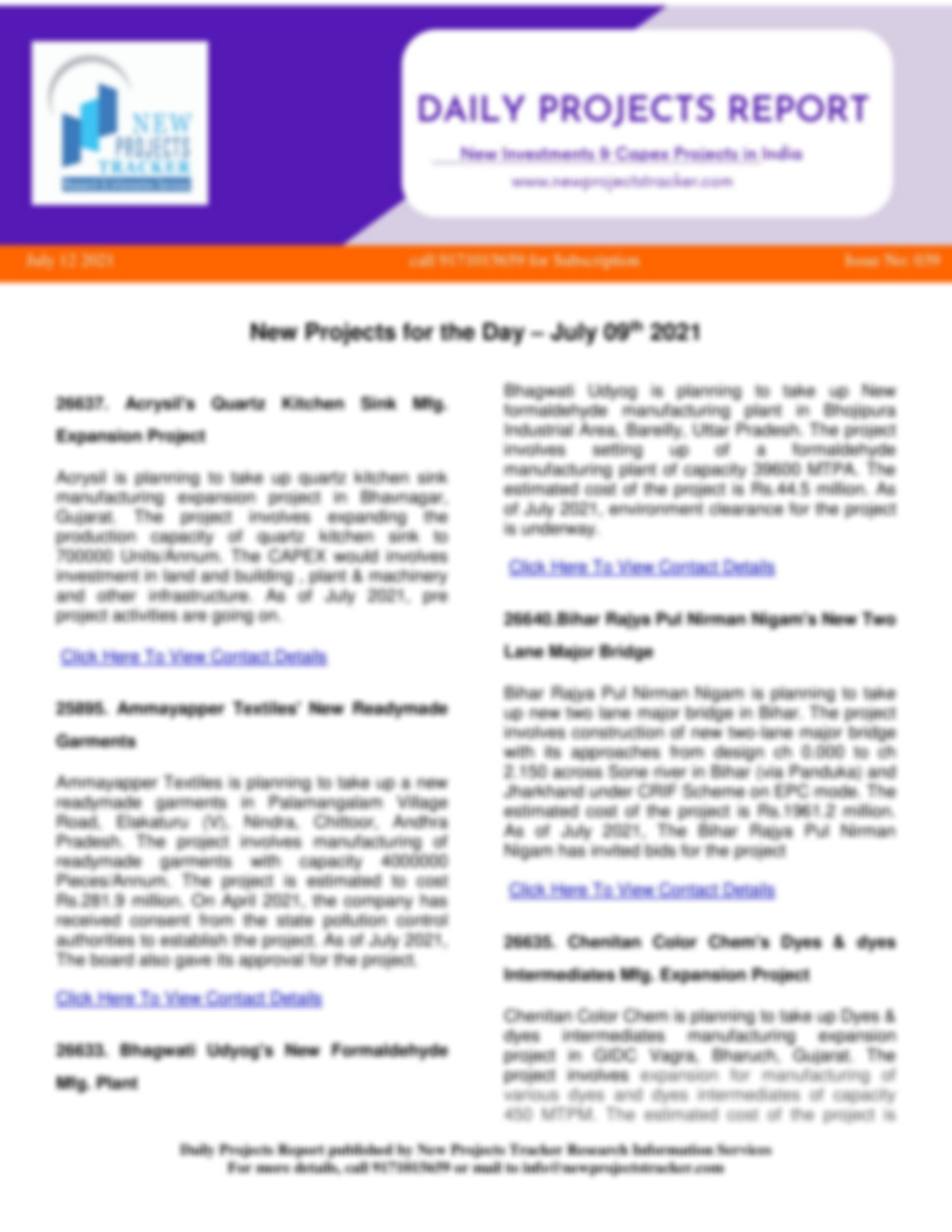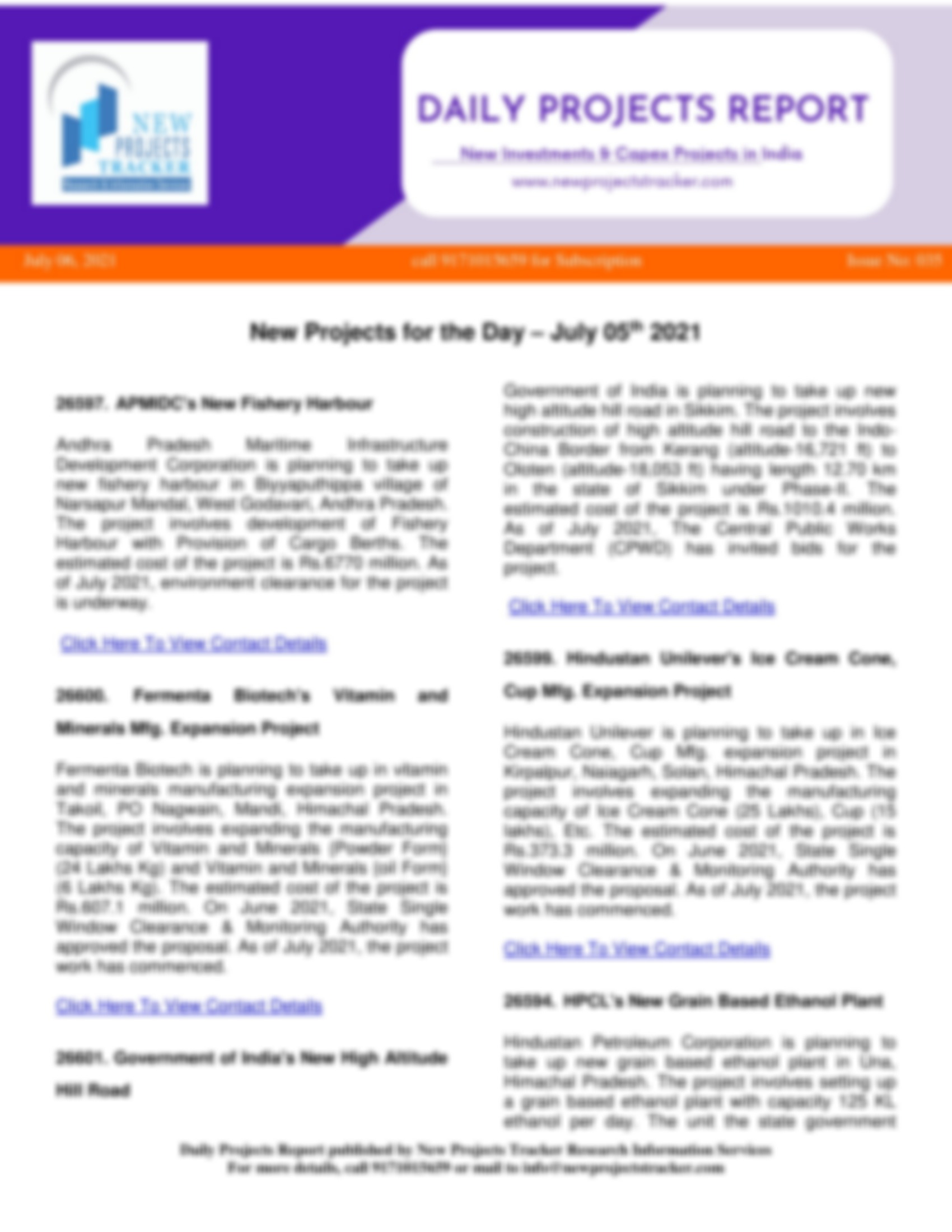 Rikayaa Enterprises’ New Industrial Unit Rikayaa Enterprises is planning to take up in New Industrial Unit in Thanthewal, Nalagarh, Solan. Himachal Pradesh. The project involves setting up new industrial unit for manufacturing of…