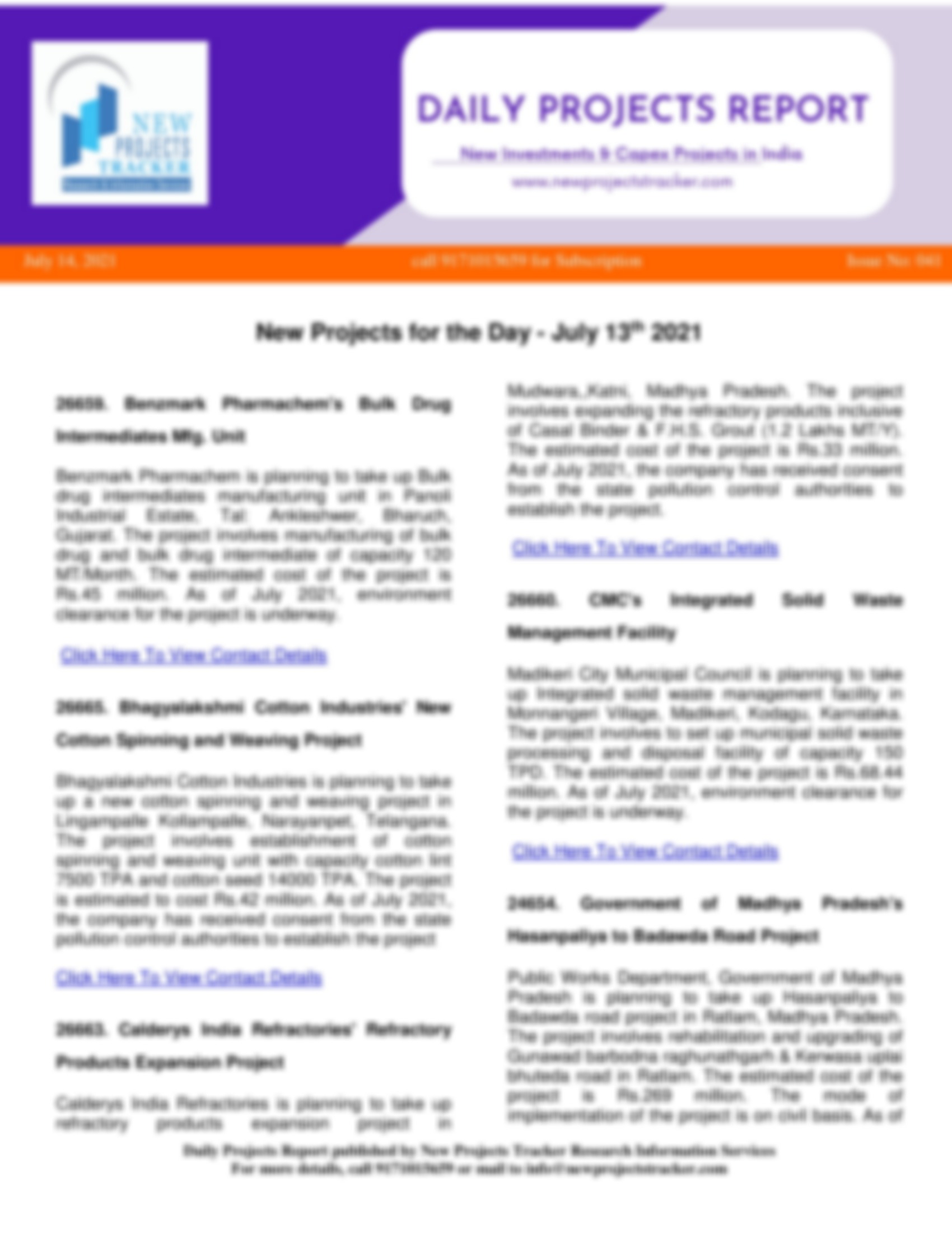 Magnumtuff India is planning to take up new architectural & automotive glass processing unit in Hanchanala village, Hukkeri taluk, Belagavi district, Karnataka. The project involves establishment of architectural & automotive glass processing…