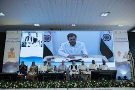 Parshottam Rupala, the Union minister of fisheries, animal husbandry, and dairying, and Sarbananda Sonowal, the minister of ports, shipping, and waterways, lay the cornerstone for the project to modernise and upgrade the Cochin…