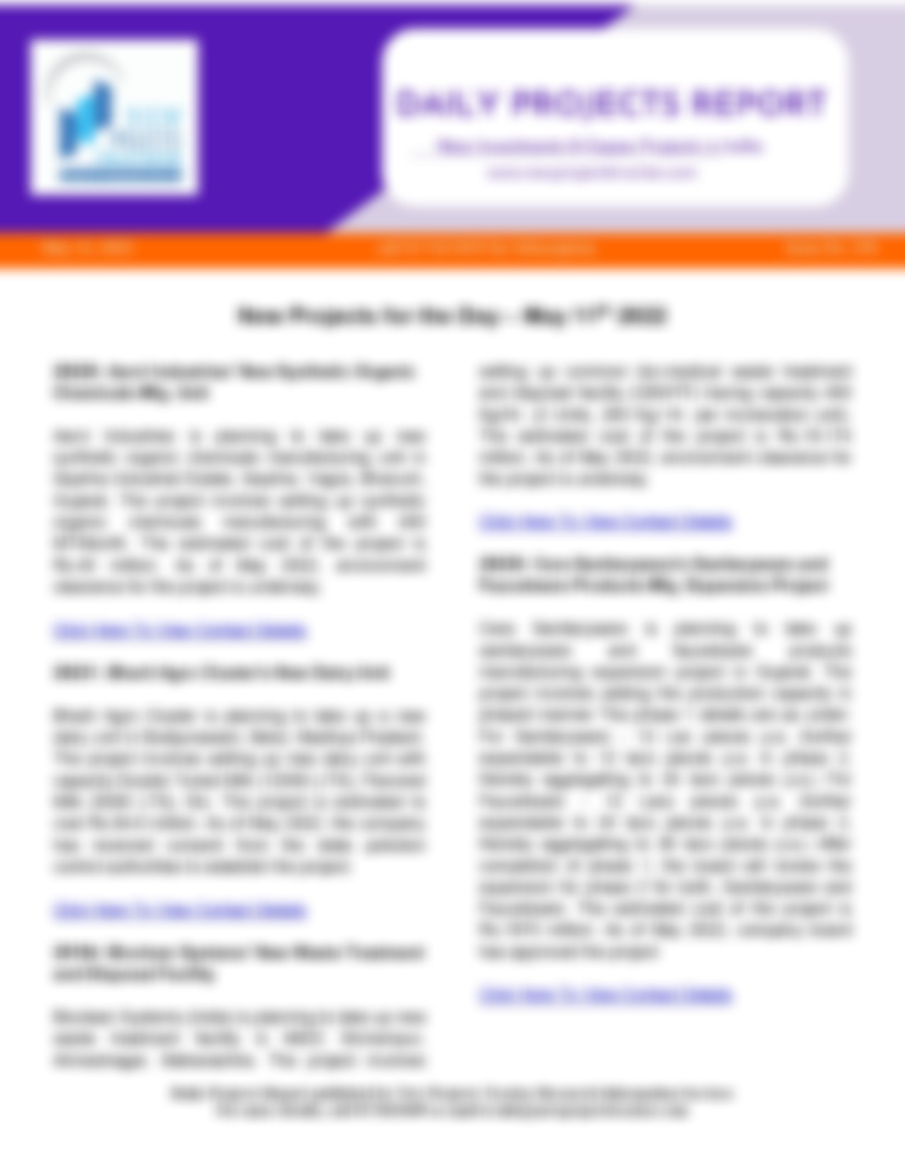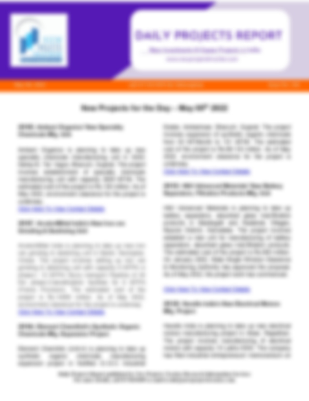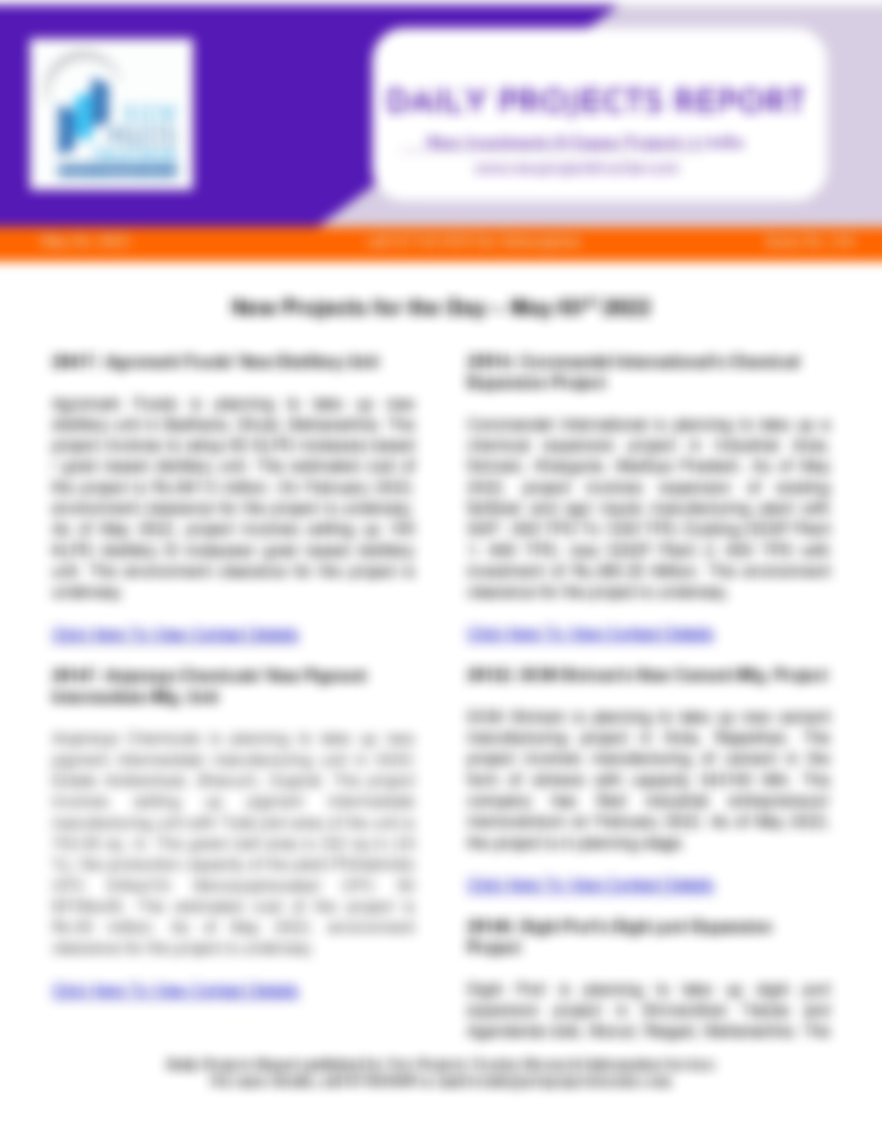 Savidha Colour Chem Industries’ New Synthetic Organic Chemicals Mfg. Unit Savidha Colour Chem Industries is planning to take up new synthetic organic chemicals manufacturing unit in Dhanot, Kalol, Gandhinagar, Gujarat. The project involves…