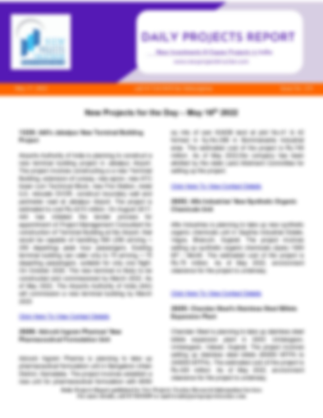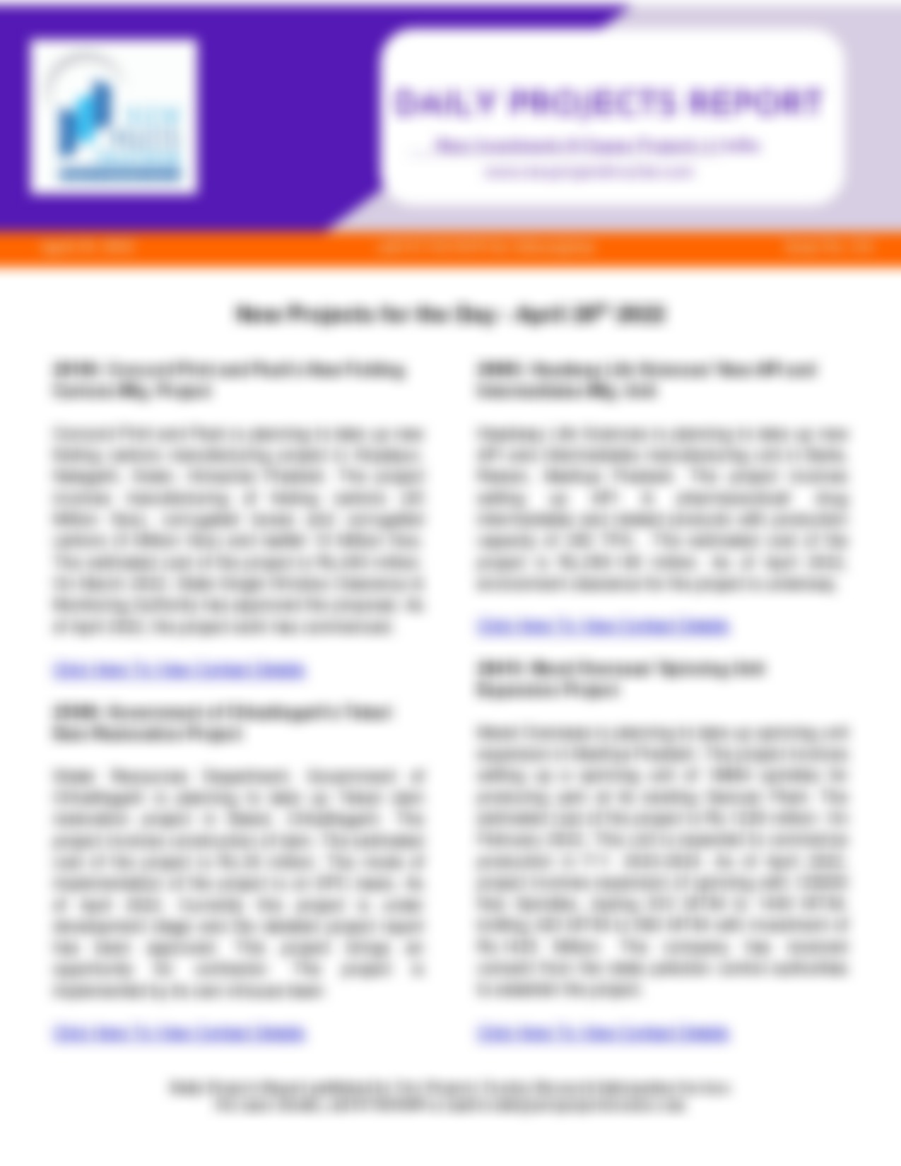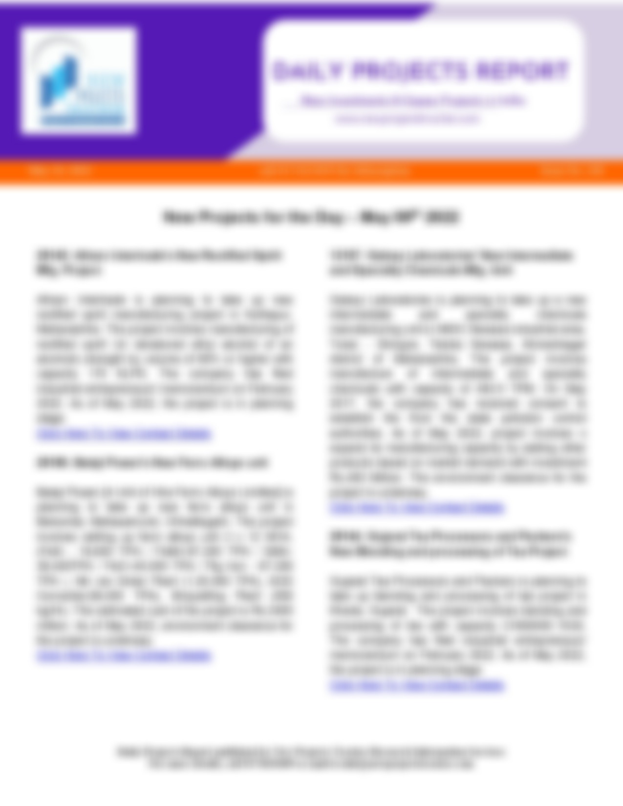 Savidha Colour Chem Industries’ New Synthetic Organic Chemicals Mfg. Unit Savidha Colour Chem Industries is planning to take up new synthetic organic chemicals manufacturing unit in Dhanot, Kalol, Gandhinagar, Gujarat. The project involves…