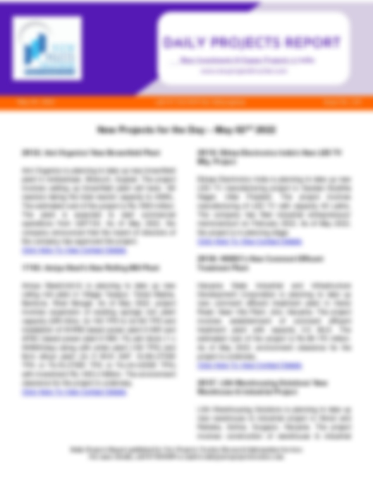 Livon Techno Foams’ New Foam Mfg. Unit Livon Techno Foams is planning to take up new foam manufacturing unit in Manoharabad, Kallakal, Medak, Telangana. The project involves setting up foam manufacturing unit with…