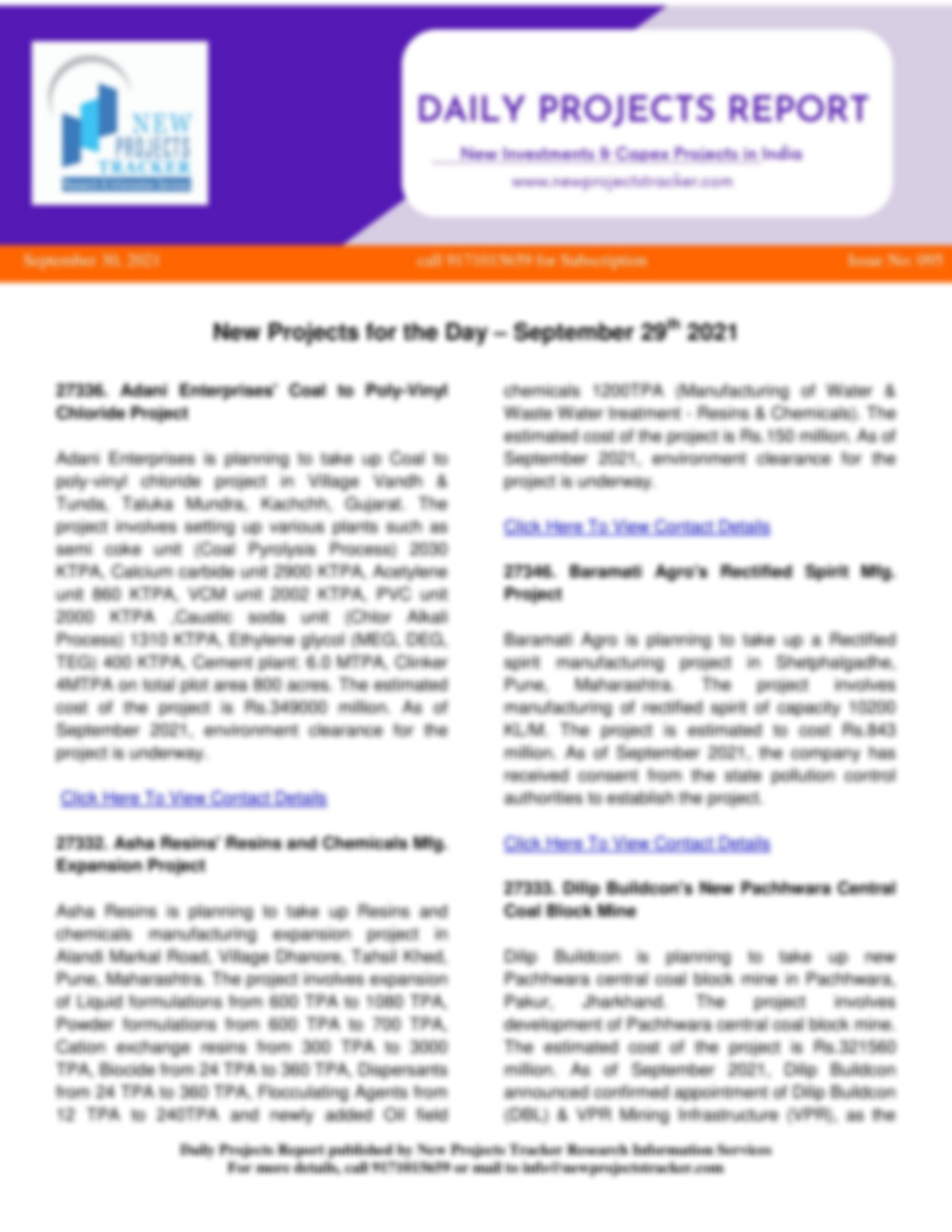Adani Enterprises’ Coal to Poly-Vinyl Chloride Project Adani Enterprises is planning to take up Coal to poly-vinyl chloride project in Village Vandh & Tunda, Taluka Mundra, Kachchh, Gujarat. The project involves setting up…