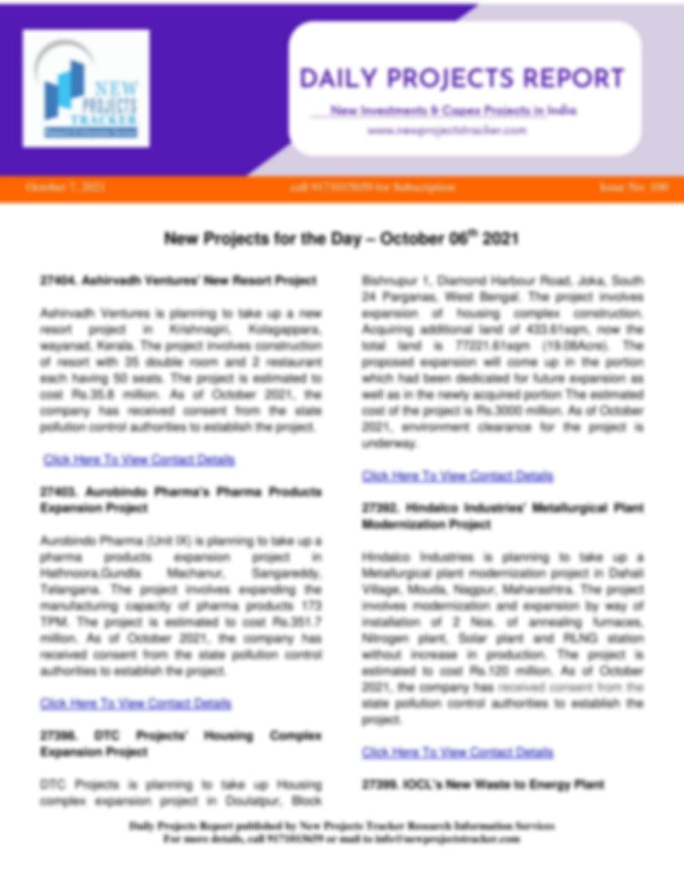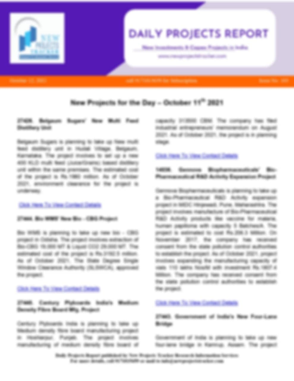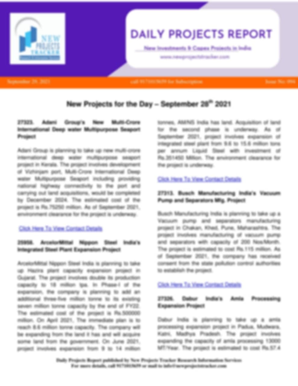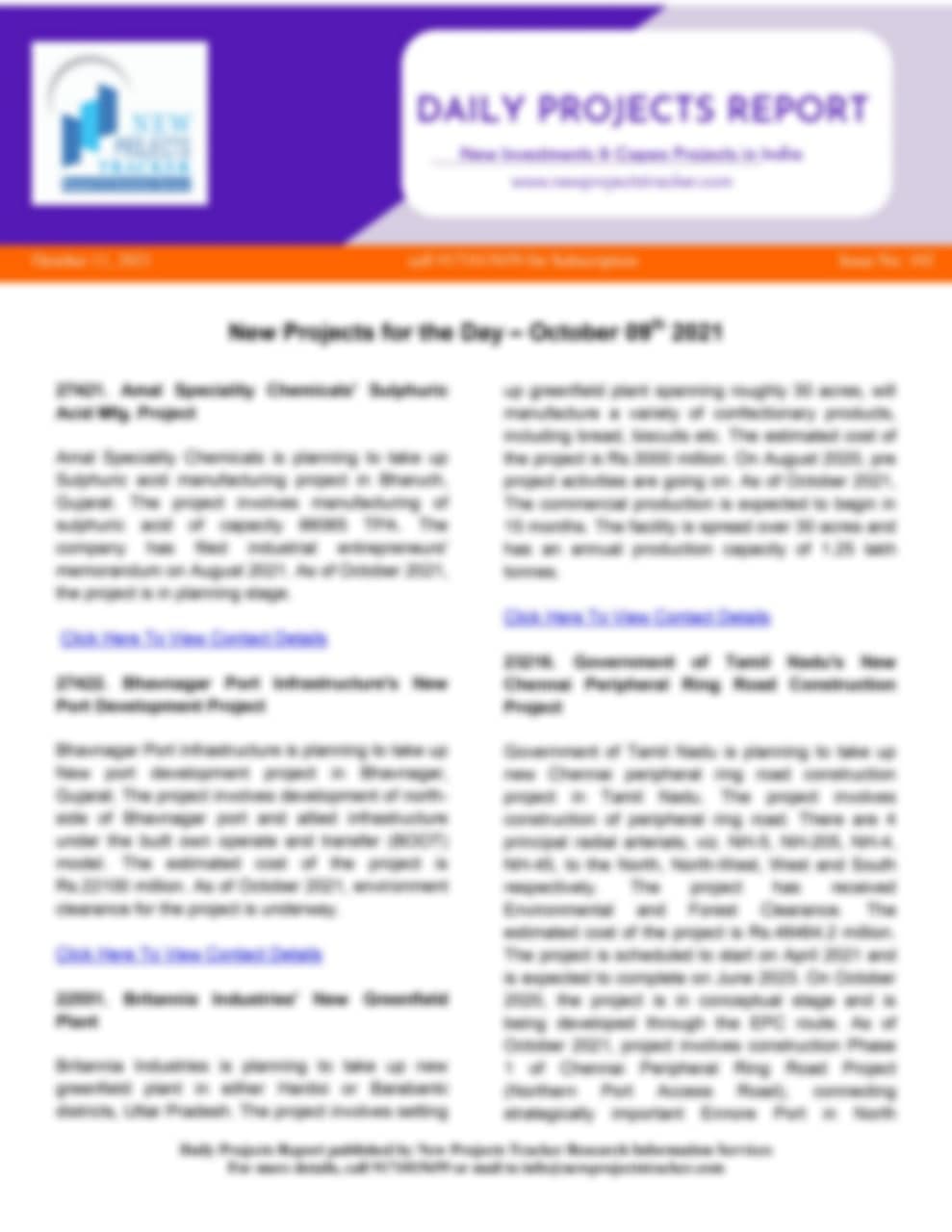 Britannia Industries’ New Greenfield Plant Britannia Industries is planning to take up new greenfield plant in either Hardoi or Barabanki districts, Uttar Pradesh. The project involves setting up greenfield plant spanning roughly 30…
