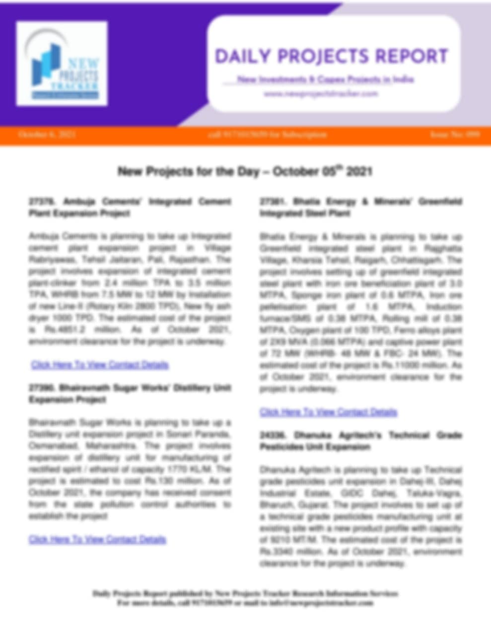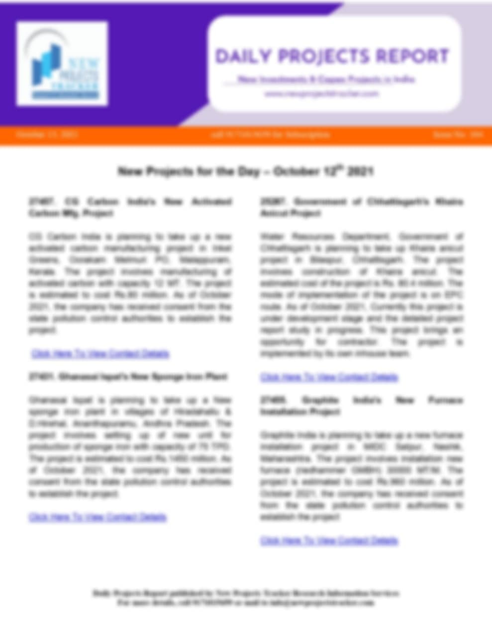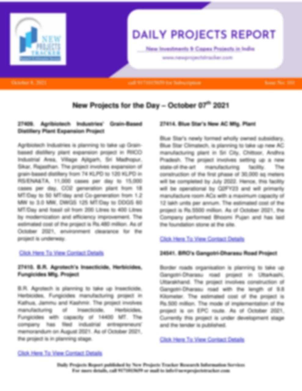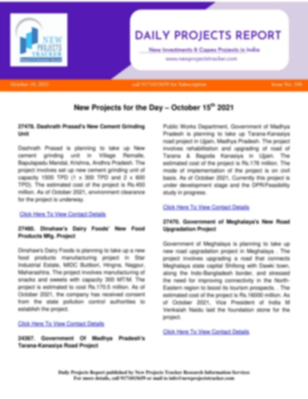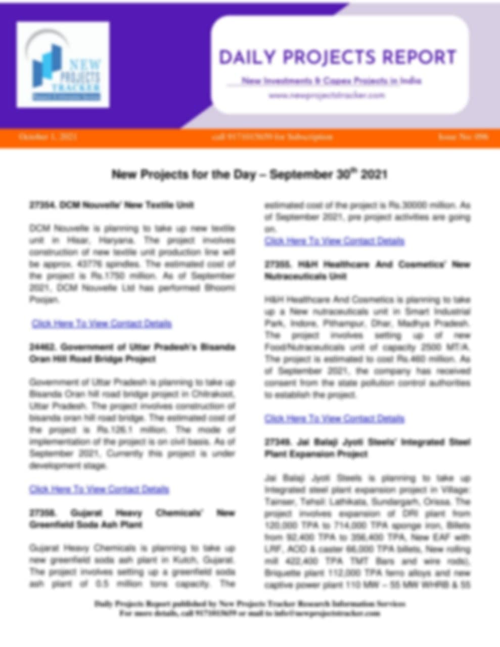 Britannia Industries’ New Greenfield Plant Britannia Industries is planning to take up new greenfield plant in either Hardoi or Barabanki districts, Uttar Pradesh. The project involves setting up greenfield plant spanning roughly 30…