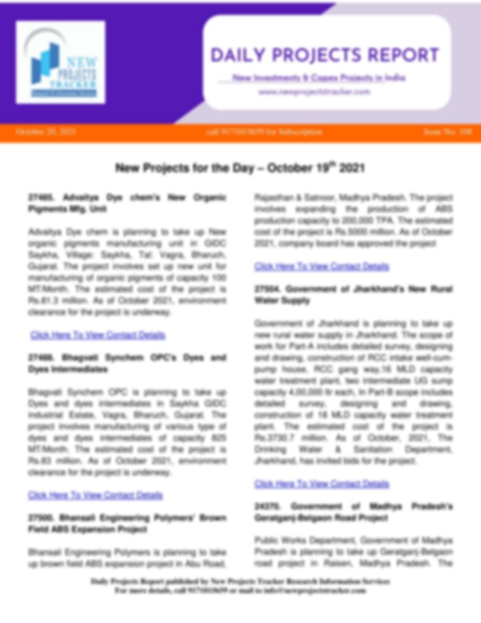 Advaitya Dye chem’s New Organic Pigments Mfg. Unit Advaitya Dye chem is planning to take up New organic pigments manufacturing unit in GIDC Saykha, Village: Saykha, Tal: Vagra, Bharuch, Gujarat. The project involves…