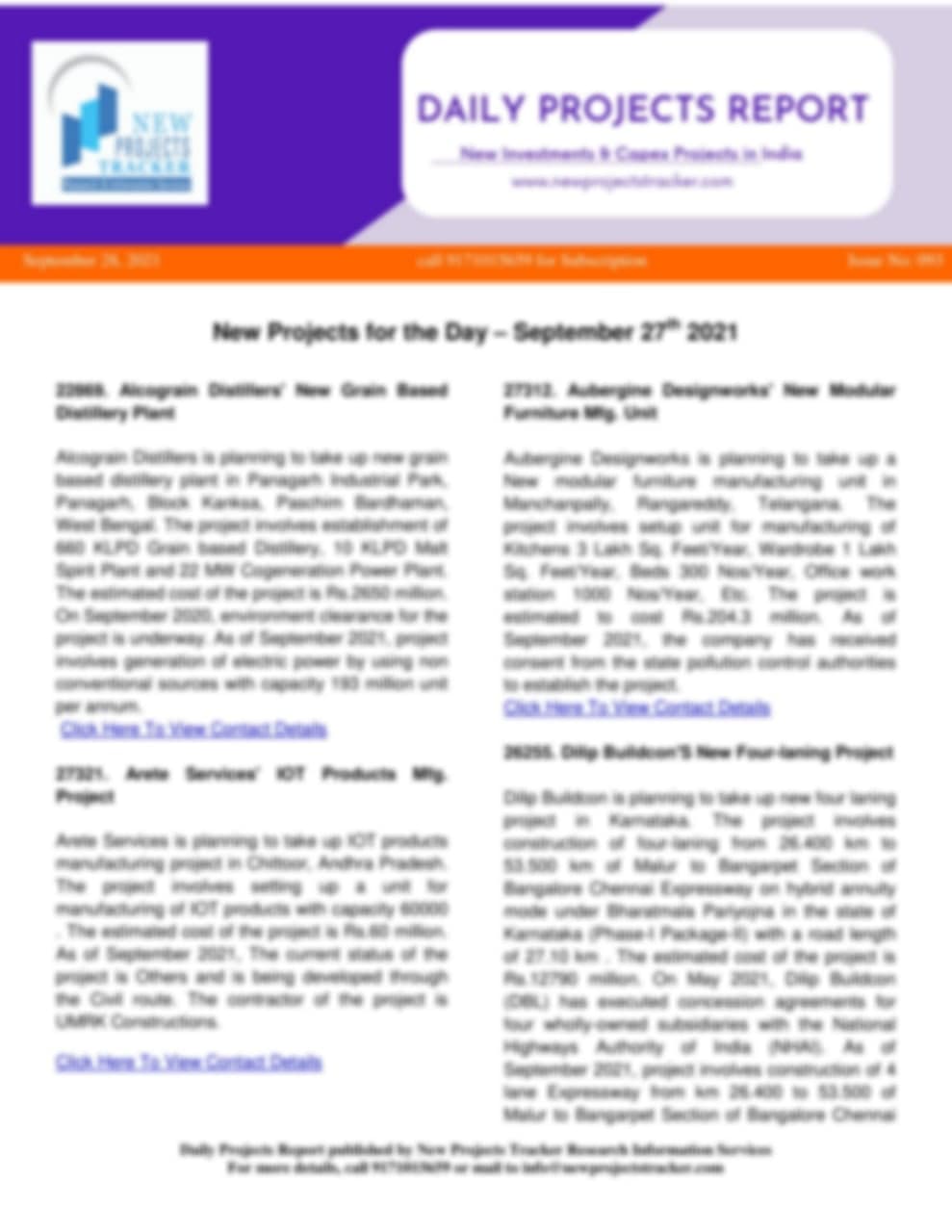 Aubergine Designworks’ New Modular Furniture Mfg. Unit Aubergine Designworks is planning to take up a New modular furniture manufacturing unit in Manchanpally, Rangareddy, Telangana. The project involves setup unit for manufacturing of Kitchens…