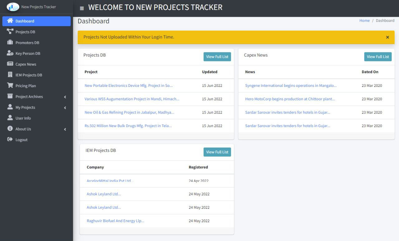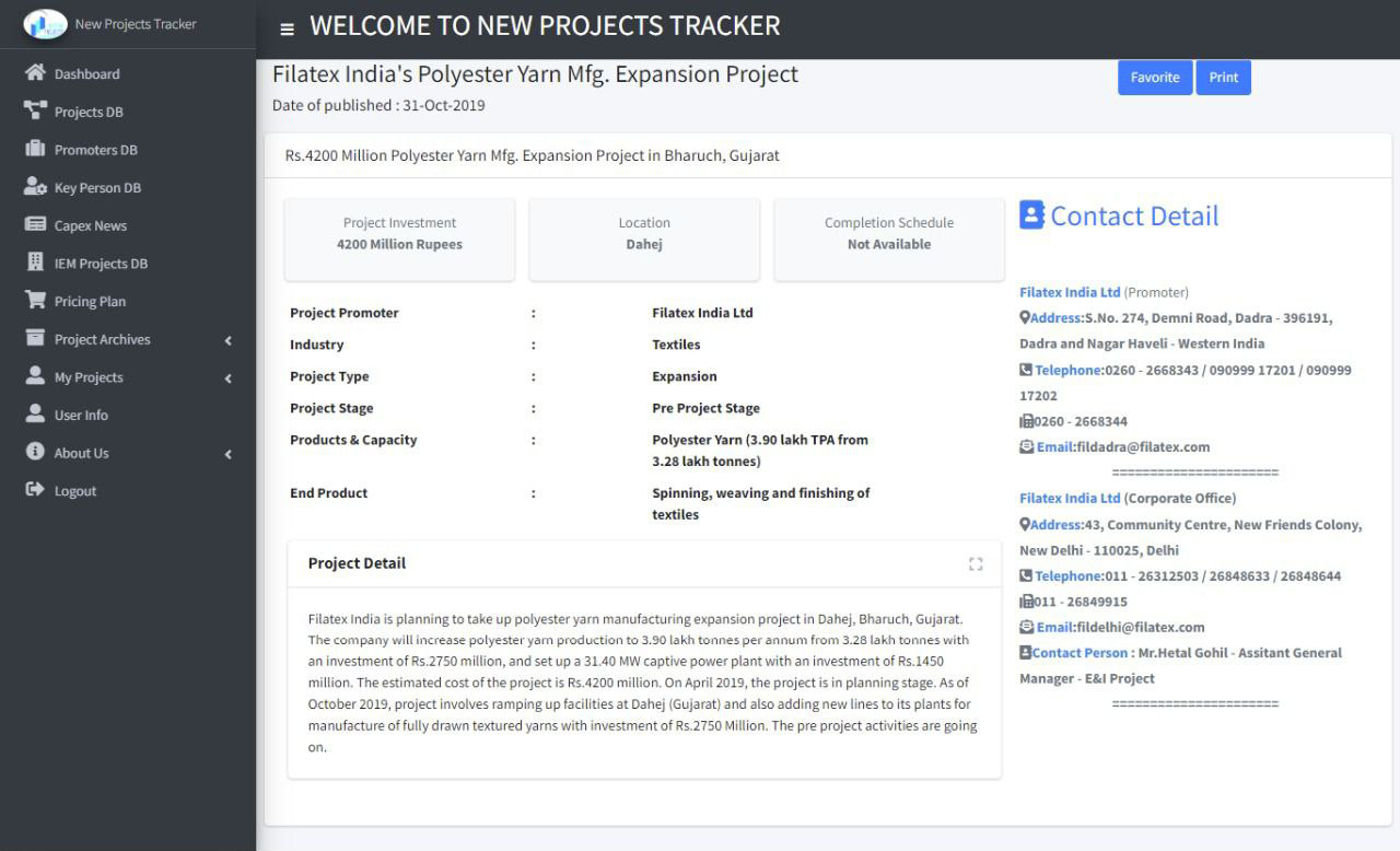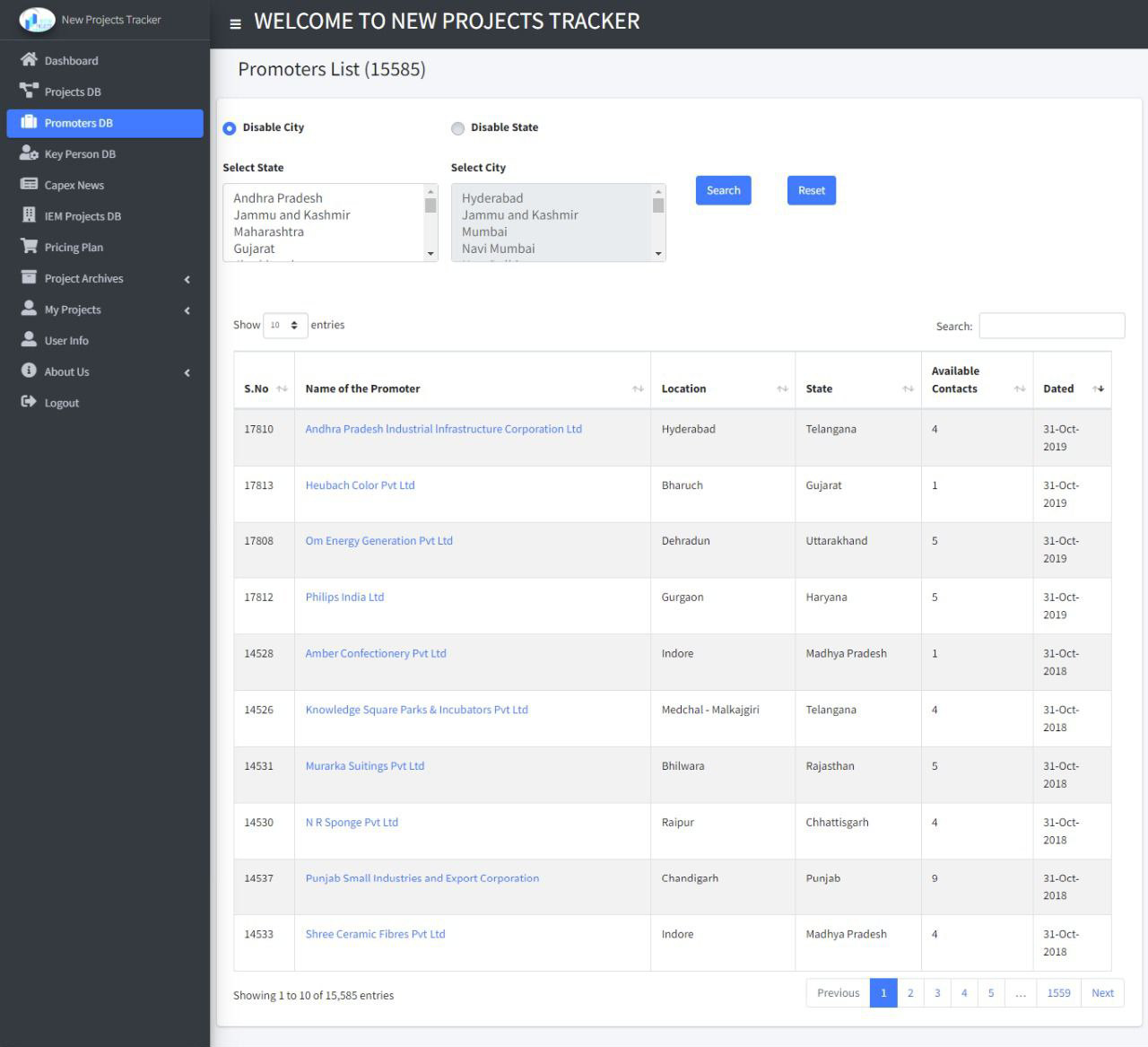 Promoters’ DB : A separate database of all companies associated with the projects.